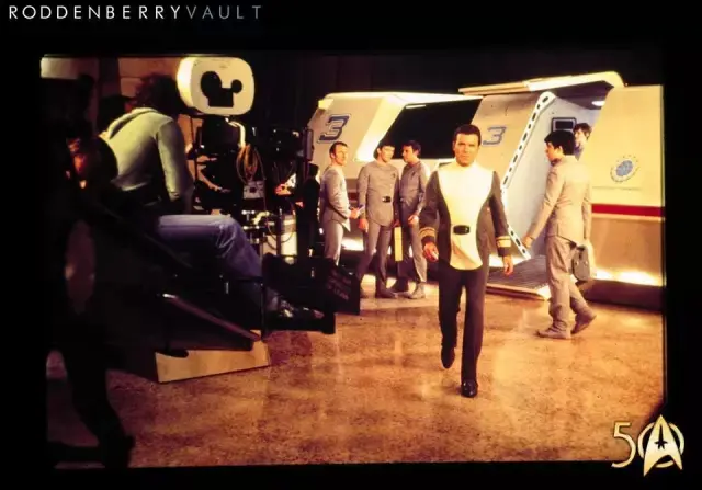 大雷:步履蹒跚的!在银幕上步履蹒跚,如果丢掉几磅肉就会更干练了。但我们没能得到机会。所以那就是星际迷航作为电影的完结。一切都结束了,他们经济上遭受了损失,至少那个时候是的,虽然我了解到电影后续还是赚到了钱。不过那时候一切都结束了。但那时候制片公司的老板,我试图想起他的名字,他的妻子和他说,星际迷航那么好,你们得再拍一部。这位老板,他只是老板,并不是公司的负责人,就说,我们要再拍一部。然后他们找来了一位电视制作人,哈维·贝纳特,因为他说我可以花很少的钱。他确实做到了。那促成了第二部电影的启动,我们那时候以为第二部会是最后一部了。之后每一部星际迷航电影,我们都以为是最后一部,结束的时候他们都会把布景烧掉。没有理由留着复原,因为不会再有下一部了。所以他们就全烧了。